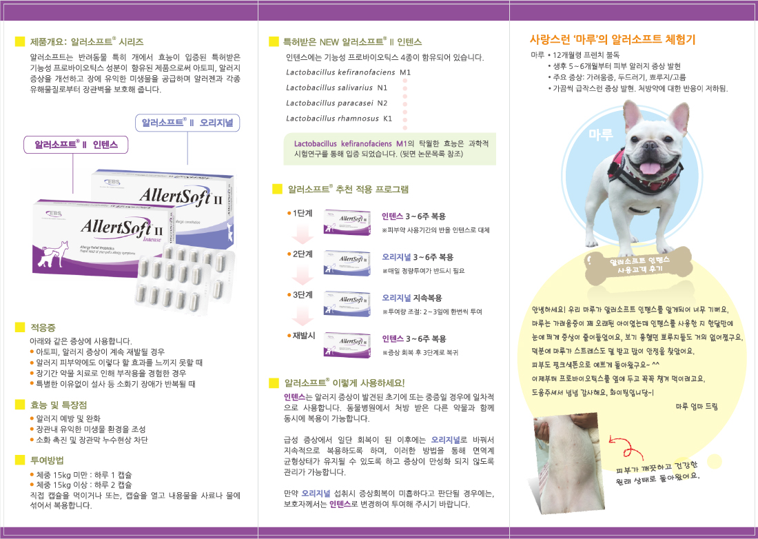 4.피부약 혼합복용 프로그램: 피부 처방약을 먹이는 기간 알러소프트를 함께 복용하며 피부약 처방이 종료된 이후에도 알러소프트를 꾸준히 복용함으로써 부작용 없이 증상개선 효과를 장기간 유지할 수 있습니다.