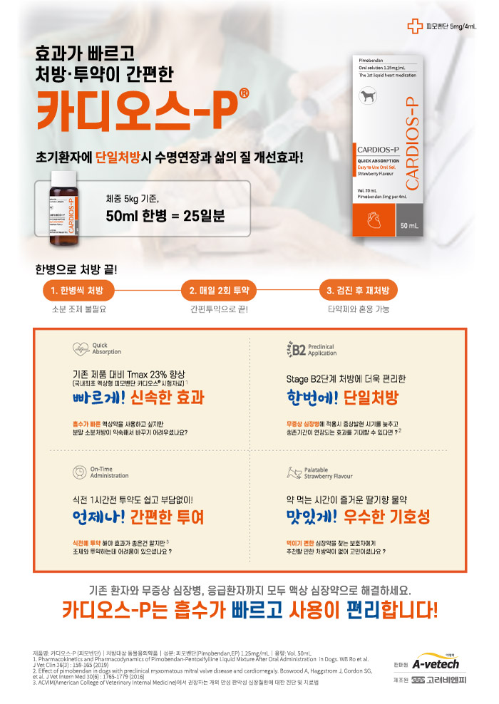 카디오스-P는 현존하는 가장 빠른 체내흡수력과 우수한 기호성을 자랑합니다.