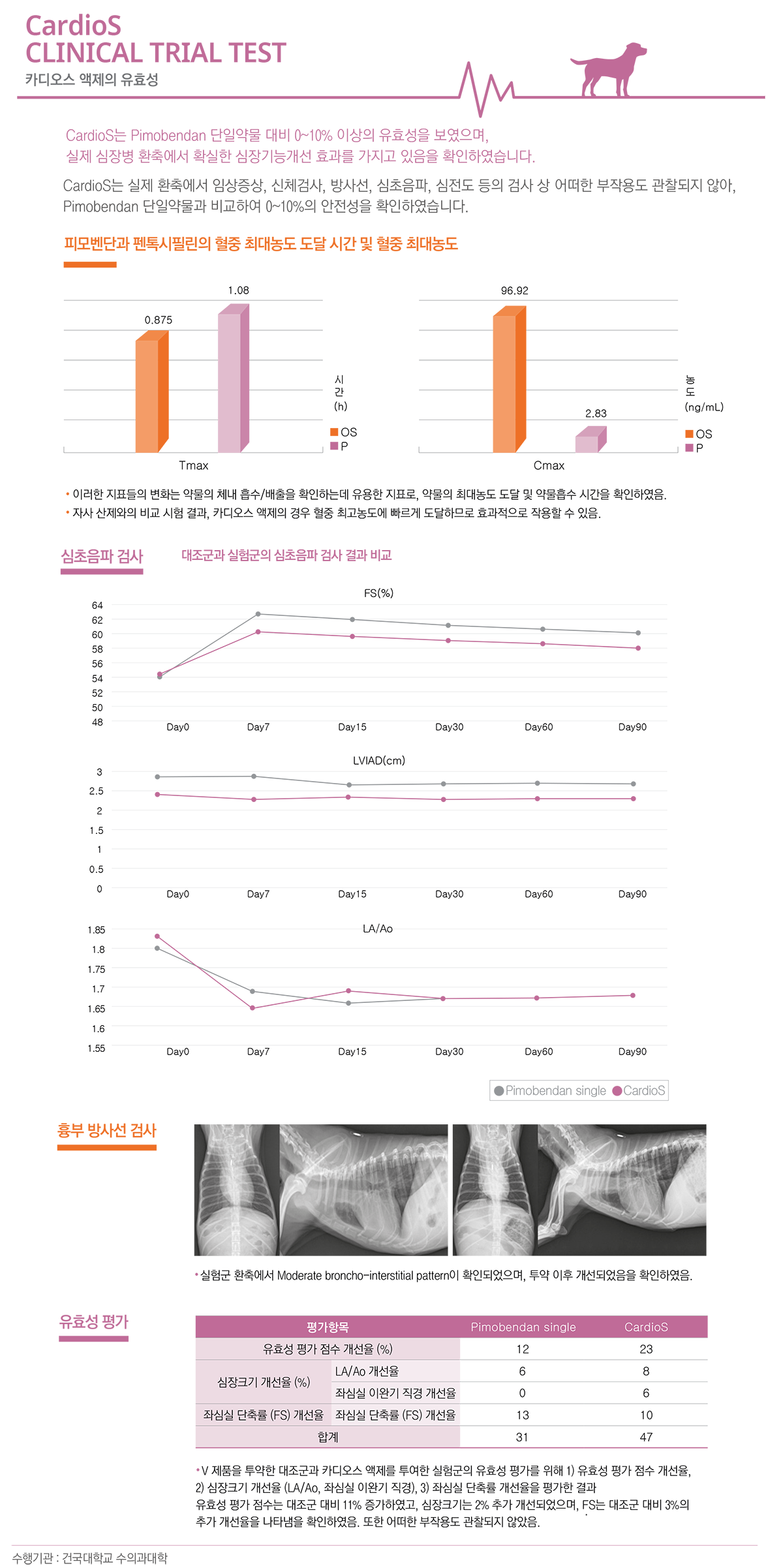 | 국가인증 신약 허가 획득 | 건국대학교 수의과학연구소 테스트 완료 | 차세대 심장약 보급 |