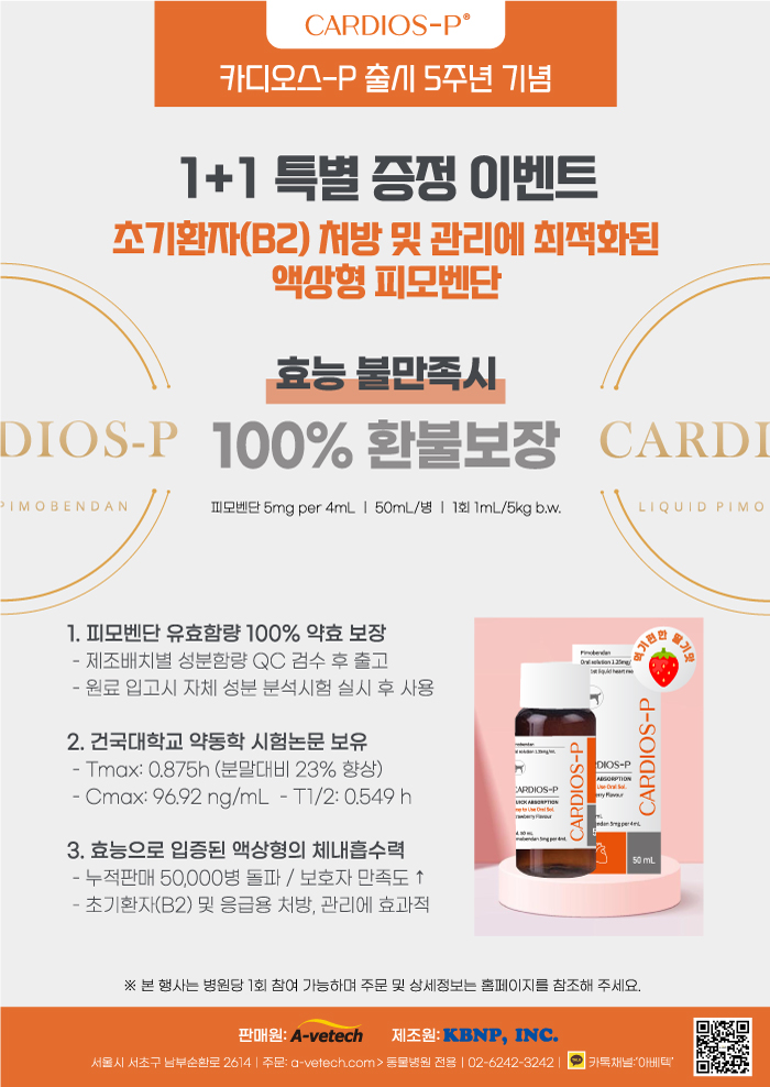 | 국가인증 신약 허가 획득 | 건국대학교 수의과학연구소 테스트 완료 | 차세대 심장약 보급 |